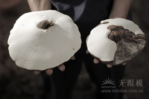 采摘完毕,老项需要对灵芝进行初步筛选。老项介绍,像右边这样的灵芝并非没有功效,一般来说也可以使用,但无限极的标准要高于一般,所以只有左边这样洁白无瑕的灵芝才会进入无限极的工厂。