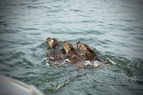 常年接送药农的船家,常常在湖中见到黄羚羊游来游去。这一次,竟然偶遇三只小野猪在湖里戏水。