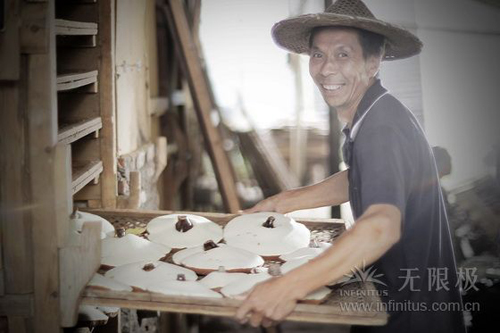 刚刚采割的灵芝要马上烘干处理。新鲜灵芝不能堆放,以免腐坏污染。龙泉的老项采用土法烘干灵芝,这时也是他精神高度集中的时刻。