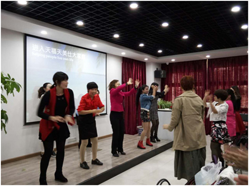 激情四射的抓钱舞有着多种寓意,第一它象征着可以抓到很多很多的财富、第二它本身是运动,作为会议前开场带动了可以全场的气氛,快速将现场气氛推到高潮。会议进入正题,此次会议由分公司员工汪倩主持,分公司王然经理主讲天美仕的价值愿景和新型商业模式。