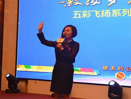河南分公司经理李雪为大会致辞,她表示,康美作为中国中医药行业的标杆企业,选择它,无疑是选择站在了巨人的肩膀上,雄厚的企业实力,定会成为大家拓展事业的无忧保障。她号召所有的业务伙伴和康美一起成长与进步,共同创造人生出彩的时刻,共同分享梦想成真的喜悦。