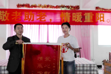 活动现场钟祥镇政府向三生(中国)健康产业有限公司赠送了“爱老敬老 弘扬美德”的锦旗,副镇长曾建光代表老人们向三生公司表示感谢,企业关注老年弱势群体,献出爱心,让他十分的感动,同时也祝福老人们节日快乐。