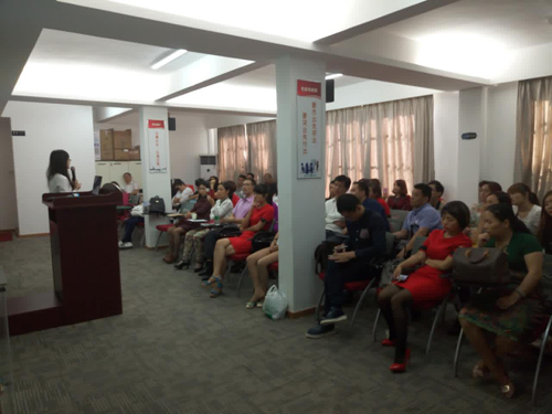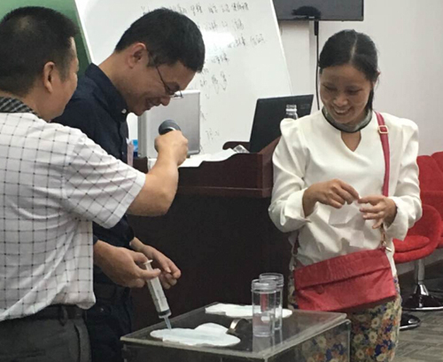 深圳领导人易万贵深度剖析了九极的财富密码,而另外一位深圳领导人郑兵给大家带来产品功能介绍以及卫生巾、益清产品示范,他一边操作示范mm卫生巾强大的吸水能力和防漏性能,一边讲解产品的功效,大家在下面都全神贯注观看学习,不时地发出赞叹。