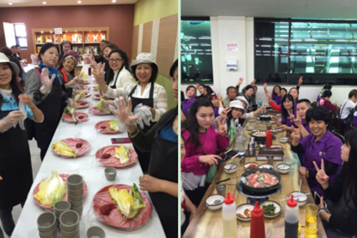提到韩国美食,大家首先想到的就是韩式泡菜,韩国文化馆中大家现场学习正宗韩式泡菜制作方法,品尝各式泡菜风味,人参鸡、烤肉、火锅等正宗韩式美食也让大家食欲大振。