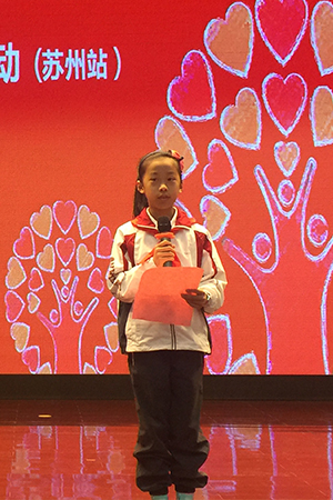 吴江实验小学学生代表对所有关心他们的叔叔阿姨表示感谢