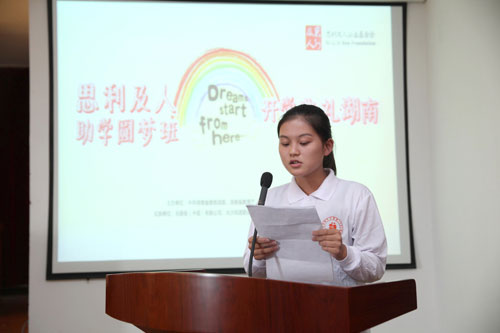 因为“助学圆梦“的资助,我们的梦想从这里出发。学生代表陶娟分享了她的受助经历和对未来的期盼
