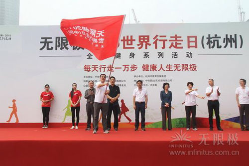 此次活动由杭州市体育发展集团承办,无限极(中国)有限公司为独家合作伙伴。在启动仪式上,国家体育总局群体司副巡视员张栋先生,向政协杭州市教科文卫体委员会主任周红女士授旗,接着周红女士将杭州站的引领旗帜授予无限极(中国)有限公司代表李冰先生。