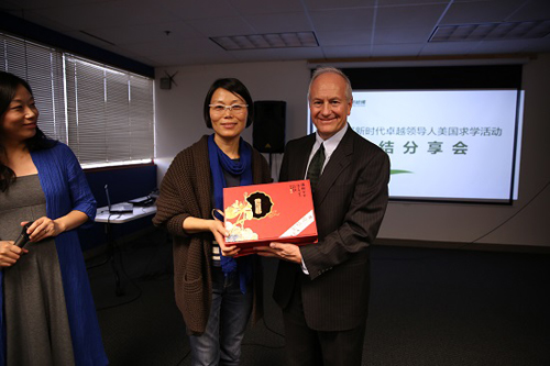 (新时代健康产业集团副总经理张红赠送圣和西市政府官员礼物)