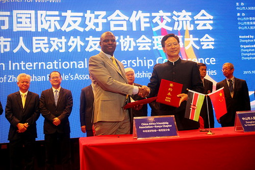 为搭建“丝绸之路”经贸合作平台,活动举行了友好交流合作签约仪式,中山分别与密克罗尼西亚联邦如尔市、秘鲁切彭市,肯中友协代表、孟中人民友协两个国外城市、两个国际友好组织建立友好交流合作关系。古董事长、许副董事长共同见证了签约仪式。此次受邀参会的嘉宾基本来自“一带一路”沿线国家,会议进一步深化了中山与“一带一路”沿线国家在各领域,特别是经贸方面的交流合作。