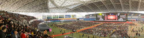 最美安惠,金秋收获。10月31日,南通体育会展中心华灯闪烁,星光璀璨。在洋溢着和谐的节日氛围中,在充满着动感欢乐的《小蘑菇 大家庭》中,在气势磅礴的鼓舞《盛世龙腾》中,全球安惠人最期待、最憧憬、最向往的美好时刻——2015安惠公司优秀经销商表彰盛典闪耀开启。