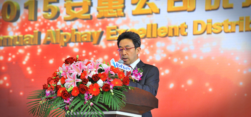 安惠公司副总经理施宏昌致欢迎词。他说,2015财年,安惠事业能取得优异成绩,离不开江海系统的正确指引,离不开所有安惠人的同心协力,感谢大家与安惠一路同行,一路收获,一起向着美好的未来前进。他希望未来能有更多的人通过努力登上荣耀舞台,成就自己,影响他人,让他们也感受到人生的美好。