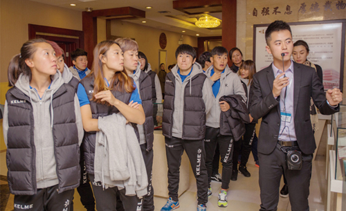 大连权健女子足球队参观权健集团企业文化长廊
