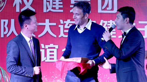 束昱辉董事长为天津权健足球队主教练托米奇颁发特别贡献奖