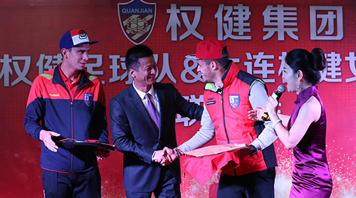 束昱辉董事长为天津权健足球队外援卢西奥、胡安颁发特别贡献奖