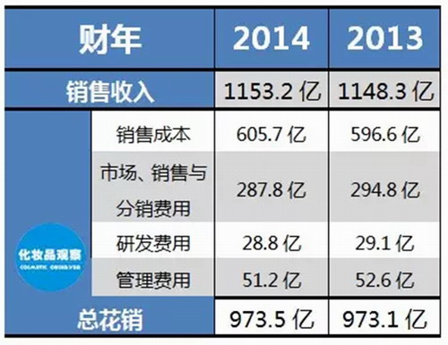 汉高公司2014财年增长并不多,所以也没敢花更多的钱。事实上,2014年的总花销与2013年几乎是持平的,只多了大约7000万元。
