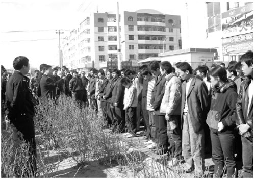 2007年4月25日,内蒙古自治区通辽市工商局科尔沁区分局查处一个传销组织,现场教育传销人员。