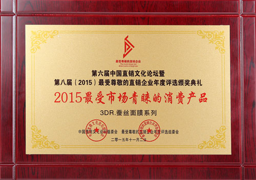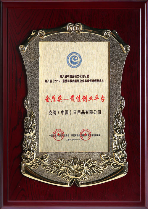 2015年11月1日至3日,“第六届中国直销文化论坛暨第八届(2015)最受尊敬的直销企业年度评选颁奖典礼”在北京隆重召开!本次大会以“平台战略”为主题,吸引了包括中宣部舆情局局长孙瑜、国家机关事务管理局原巡视员周晋亮等众多行业内外的专家、学者、优秀直销企业代表和优秀经销商相聚一堂,共话直销发展大计。克缇(中国)也获邀出席了此次盛会,并斩获三项大奖:克缇(中国)日用品有限公司获得“最佳创业平台”荣誉;克缇国际集团总裁陈武刚获得“2015最受尊敬的直销企业家”荣誉;3DR.蚕丝面膜系列产品获得“2015最受市场青睐的消费产品”荣誉!