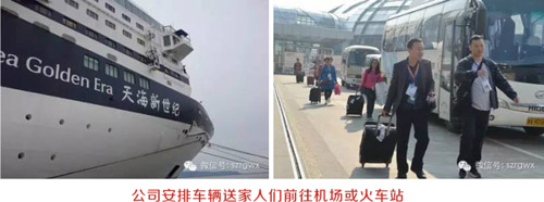 11月3日早上,天海“新世纪号”邮轮载着荣格家人荣耀归来,回到起航之地上海,圆满结束荣格首期海外拓展训练营所有的行程。公司特别安排车辆送家人们前往机场和虹桥火车站。车辆到达后,公司领导与家人们握手话别。