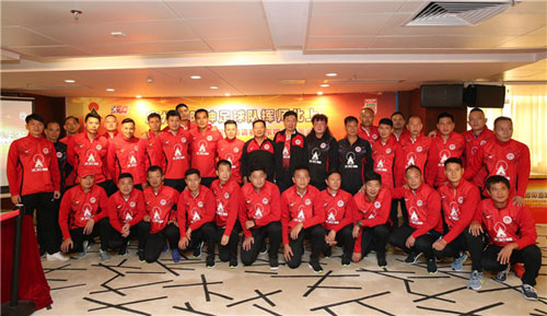 (集团副总潘皓皓与广州太阳神队全体成员)