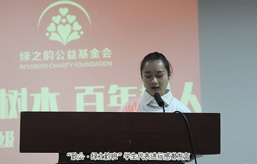 在听完学生感动人心的分享发言后,绿之韵集团董事长胡国安先生在现场发表了温暖讲话,他说:“十二年来,绿之韵一直秉承传承中华五千年养生文化,把中国最好的产品传递给最需要的人。在积极发展实业的同时,我们长期坚持爱心事业,十多年来,通过捐建希望学校、帮扶贫困母亲、树人行动等爱心公益活动,累计捐赠款物达6000多万元,用实际行动履行着企业应尽的责任和义务。‘大众创业、万众创新’、‘互联网+’,在电子商务、移动互联网发展大行其道的时代背景下,大学生也拥有着前所未有的创业机遇。湖南省人民政府在制定电子商务发展规划时,充分鼓励大学生进行‘微创业’,你们将是整个社会经济发展的新兴力量。致公•绿之韵班的开班建立,我们希望从生活、学习、实习、就业到家庭脱贫等全方位帮扶在座充满希望的你们,希冀你们通过成长学习拥有一个明亮的未来,希冀你们成为有社会责任感的专业人才,更希望你们将来还能够回馈社会,成为一个对人民、对社会、对国家有贡献的人。”