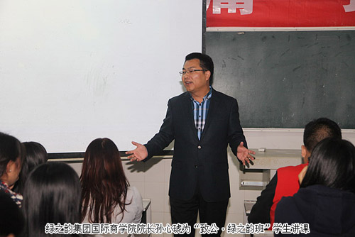 十年树木,百年树人。绿之韵树人行动自2009年启动以来,已在全国近二十所大学院校捐助学子1000余名。此次捐赠“致公•绿之韵班”,绿之韵所做的不仅仅是给孩子们提供物质上的学费资助,还希望把企业的文化知识、扎实的专业技能,通过校企合作的模式,传达给这群充满希望的学生们。晚上19:00,绿之韵集团国际商学院院长孙心琥先生为“致公•绿之韵班”的学生们带来了《拒绝平庸,创梦未来》主题课。课上,孙院长的激情讲演博得了学生们阵阵掌声,而学生们更像海绵一样,吸收着绿之韵的精神和文化。他们将心怀理想,以成熟稳健、乐观积极之姿融入致公•绿之韵班,在这里迎接全新的未来!
