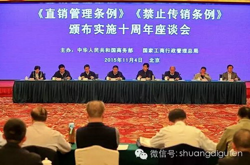 11月4日,商务部、国家工商总局在北京组织召开《直销管理条例》《禁止传销条例》颁布实施10周年座谈会,回顾10年来直销行业发展,总结打击传销和规范直销取得的成效,探讨在新形势下如何更好地推进直销行业改革创新和规范发展以及做好打击传销工作。商务部副部长房爱卿、工商总局副局长刘玉亭出席并讲话。