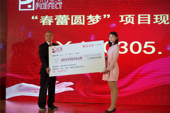 活动中完美重庆专卖店店主共为重庆妇女儿童基金会“春雷圆梦行动”捐款10万余元,“春蕾圆梦行动”是由重庆市妇联、重庆市妇女儿童基金会联合发起,旨在帮助贫困女高中生和贫困女大学生完成学业,从源头上提高人口素质,提高未来“母亲”素质的公益助学项目。从2009年6月以来,先后筹集资2700余万元,资助贫困女高中、女大学生7000多名,深受社会欢迎,成为我市扶贫助学的品牌项目。