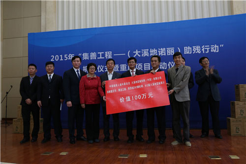 2015年11月10日,“集善工程-(大溪地诺丽)助残行动”在重庆举行捐赠仪式。仪式上,大溪地诺丽饮料(中国)有限公司向重庆市、黑龙江省、陕西省残疾人福利基金会捐赠轮椅382辆、大溪地诺丽保健饮料612箱,总价值100万元。中国残疾人福利基金会领导、重庆市残联、市残疾人福利基金会领导、黑龙江残疾人福利基金会领导、陕西残疾人福利基金会领导、大溪地诺丽饮料(中国)有限公司总经理马春林等出席仪式。