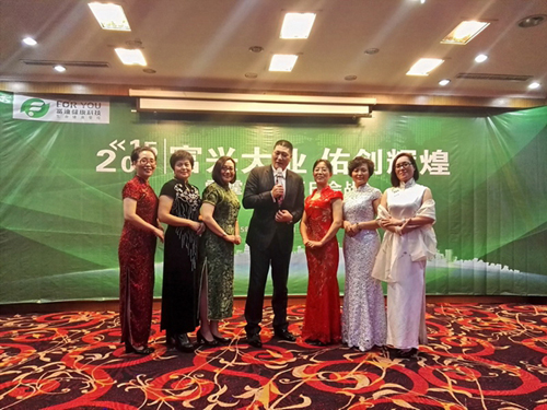 演示旗袍秀的富迪家人和翟学校帅先生合影