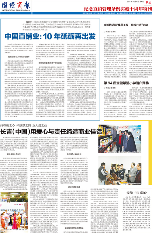 2015年10月4日,CNI长青大中华区总裁白镜亮受邀参加了由商务部、国家工商总局在京召开的《直销管理条例》、《禁止传销条例》颁布实施10周年座谈会。此次座谈会全面回顾和总结了《直销管理条例》、《禁止传销条例》颁布实施10年来,直销行业发展、打击传销和规范直销取得的成效,研究探讨新形势下深入推进直销行业改革发展,扎实做好打击传销和规范直销工作等内容。