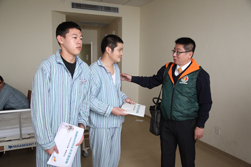 陈政裕秘书长鼓励伤员积极接受治疗,并送去慰问金和尚赫健康产品