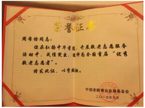 中脉周希俭获评“全国首届敬老优秀志愿者”