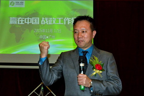 掌声和欢呼声中陈怀德先生率先致辞,他首先为各位市场领袖深鞠一躬,高声问候大家辛苦了,欢迎各位全国市场领袖回家。针对2015年我们走过的日子里做了深刻的总结,同时对如何打好2015年的收官之战,如何2016赢在中国,做了前瞻的战略部署和规划。同时勉励大家要立足今天,放眼未来,全命以赴续写富迪的传奇,实现更大的梦想。
