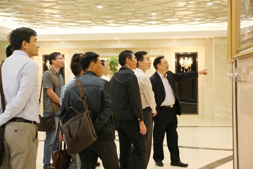 李仲树董事长对熊万鹏一行人的来访表示欢迎并感谢临沧市对金日集团的关注和支持。张副总裁则引领大家参观了新落成的金日全球会员服务中心,包括一楼时尚非凡的产品展厅、二楼现代高端的会议厅、三楼富丽堂皇的荣誉展厅。