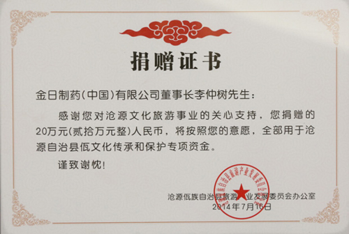 董事长2014捐赠支持沧源文化