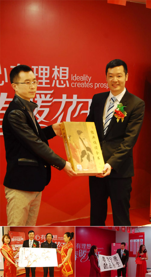 现场赠送《经典诵读全书》,并展示书法“为了理想,全力以赴”与绘画作品,一片赞誉之声。