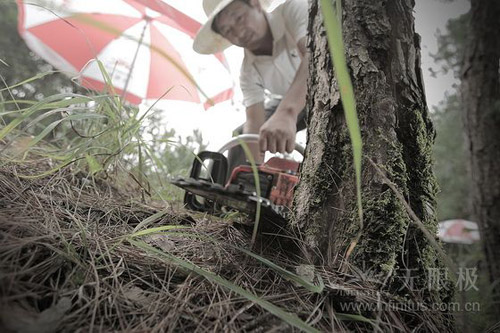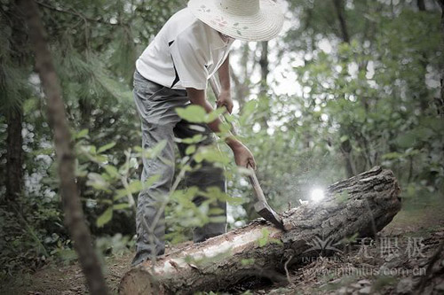 你看!晨光熹微之时,这群药农就带着工具鱼贯进入大别山腹地。那是因为,这里得天独厚的森林资源滋养出的上等松树,最适宜做我们茯苓的培养基。为了满足无限极的高标准要求,供应商必须在成千上万棵青松中,精挑细选出最具营养价值的松树来做段木!
