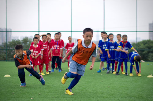 铲球、后拉球、传球……绿油油的草地上,咦,这群孩子在干嘛。