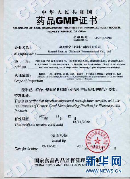 11月19日晚,康美药业公告全资子公司康美保宁(四川)制药有限公司近日收到四川省食品药品监督管理局颁发的《药品GMP证书》。这是自国家实行新版药品GMP认证之后,康美药业连续获得的第8张证书。