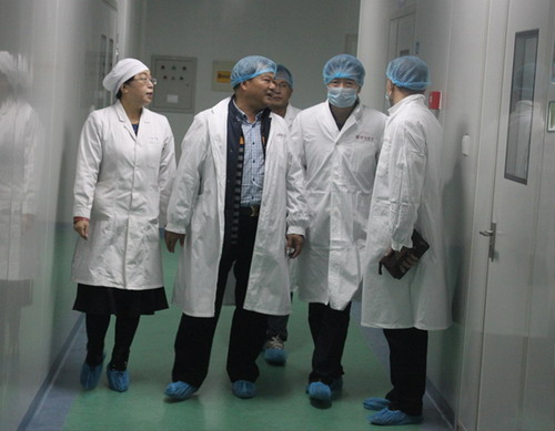 2015年11月18日,由威海市药监局兰局长带队的考察组来我公司进行考察参观,公司董事长李泥亭、市场总监邱丽莉、车间主任龙晓霞、技术品控部主任梁红玉等全程陪同。兰局长一行参观了公司厂区及车间,对威海紫光近年来的快速发展及取得的巨大成就表示了肯定与认可。