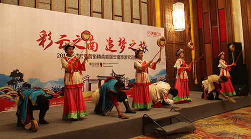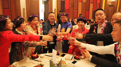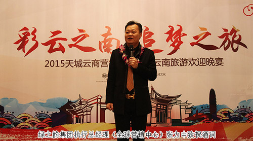 晚上18:30分,天城云商精英首届云南旅游欢迎晚宴在别具风情的白族歌舞声中拉开帷幕。绿之韵集团执行总经理(全球营销中心)张力中致祝酒辞,绿之韵集团董事长胡国安先生亲切与每一位现场家人举杯欢庆这一荣耀时刻,共同祝愿天城云商事业发展长虹。活动全程通过微信高清在线实时直播,线上线下共有三万云商精英共同分享了这美妙的荣耀之夜。