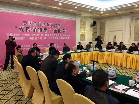 11月19日, 安庆市召开“政企联手‘共创无传销城市’座谈会”,安庆市工商质监管理局副局长陶永生,各市县区市场监督管理局分局副局长,经济检查执法局局长以及员工和玫琳凯(中国)化妆品有限公司授权经销商代表出席了会议。