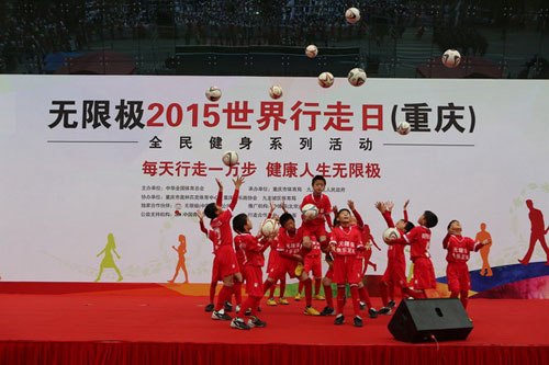在行走的同时,也别忘了参加公益!这里还有很多喜爱足球的孩子,他们在正无忧无虑地踢着足球。今年的行走日活动联手中国青少年发展基金会,共同发起“希望工程·无限极快乐足球”公益项目,为贫困地区小学儿童提供了体验快乐足球的机会。