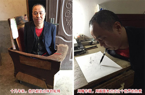 导读:借助由绿之韵公益基金会捐赠的电动轮椅,周国民实现了自己自由行动的梦想,他感恩、兴奋,迫不及待的想熟练掌握电动轮椅的使用方法,将身体从自己设计请人制作的木制手工轮椅当中解放出来,最大的愿望是:画他的画,有一天能办自己个人的书画展,实现自己人生的人生价值。