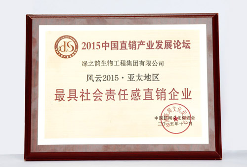 作为中国直销界的风向标,一年一度的亚太地区直销行业表彰典礼长期聚焦于直销企业、企业家、企业高管、营销系统、行业领袖以及直销产品等直销行业多个层面。 22日下午,在众多重量级媒体和参会人员的见证下,“风云2015”系列奖项逐一揭晓。本届表彰盛典相较于以往,在奖项整体设置做出了较大调整,力求全方位展现企业、个人在各方面的优秀实践,树立行业榜样,推动亚太地区直销行业的更大发展。绿之韵集团荣获“风云2015·亚太区最具社会责任感企业”、“风云2015·亚太区最具持续发展企业”等多项荣誉称号。