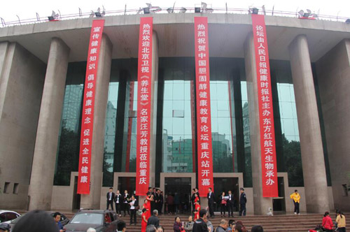 2015年11月16日,由人民日报社健康时报主办,北京东方红航天生物技术股份有限公司独家支持的中国胆固醇健康教育万里行走进山城重庆,在文化宫大剧院隆重举行。北京医院心内科副主任、北京卫视《养生堂》名家汪芳教授,人民日报社健康时报健康教育部主任李蔚海先生,北京东方红航天生物技术股份有限公司副总裁曾牧先生等领导和嘉宾出席了本次活动。