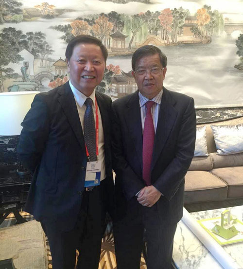董事长徐之伟与中国入世首席谈判代表龙永图(右一)合影