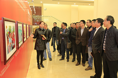 三生(中国)党支部副书记张敏进为大家介绍图片展