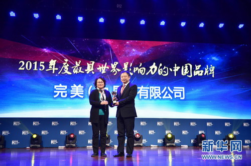 11月27日,“寻找具有世界影响力的中国品牌”大型活动颁奖盛典在北京钓鱼台国宾馆隆重举办。凭借着20多年来中国市场永续经营的坚定信念以及屡次将中国特色产业推向国际的辉煌业绩,完美公司以高票入围“最具世界影响力中国品牌”榜单。