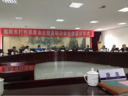 12月1日,揭阳市打传联席会议暨直销企业自律倡议仪式在揭阳市工商局顺利举行。揭阳市工商局、宣传部、政法委、公安局、检察院、法院、税务局等17部门及所属揭阳市各区县工商局领导出席了会议,康美药业等4家直销企业代表到场参会。